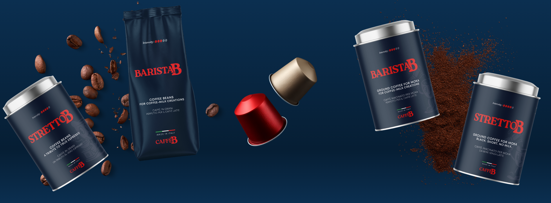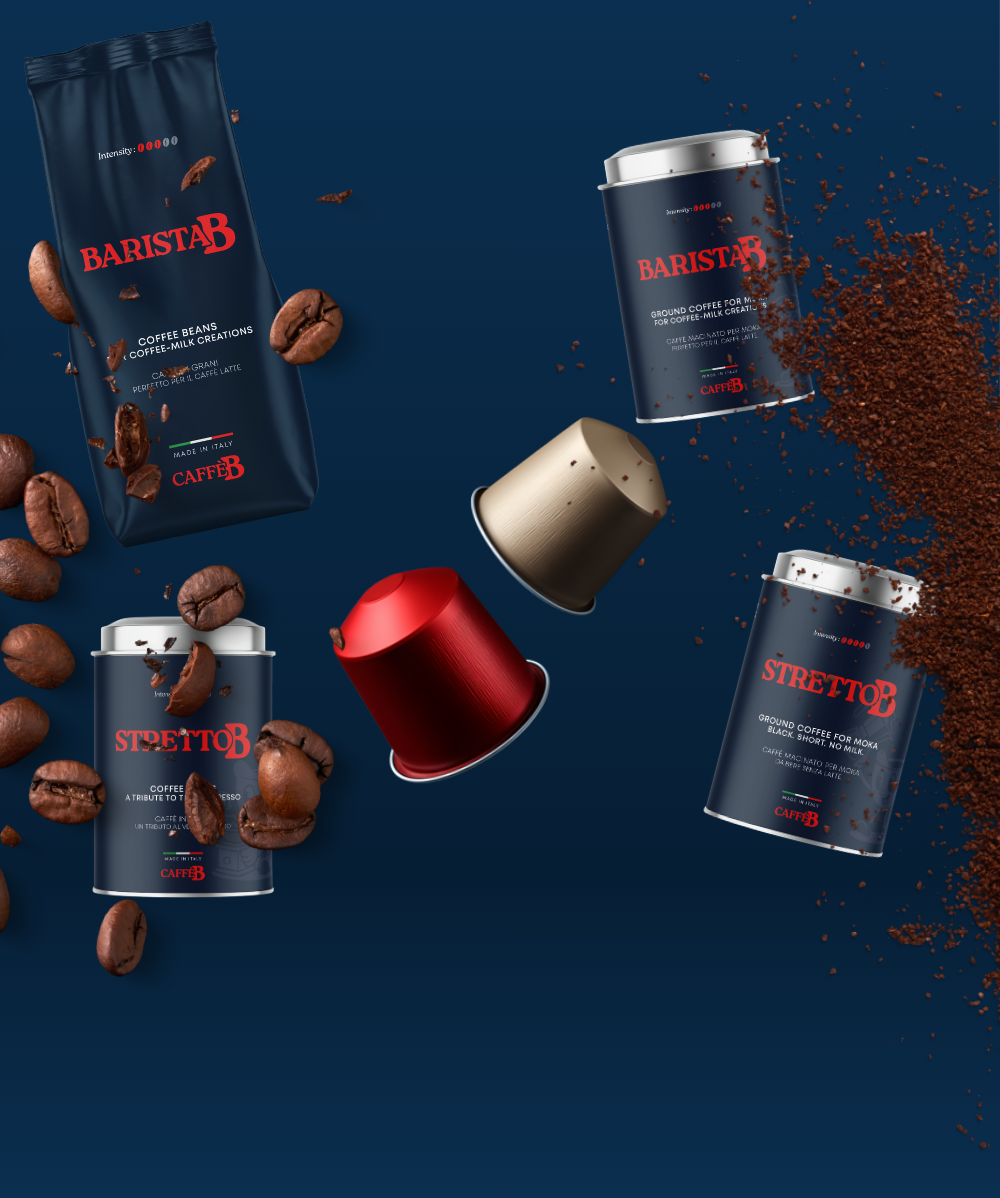 Whether you like it short and bold or smooth with milk, Caffè B was made to fit your rhythm. Available in pods, ground coffee for Moka, or whole beans.