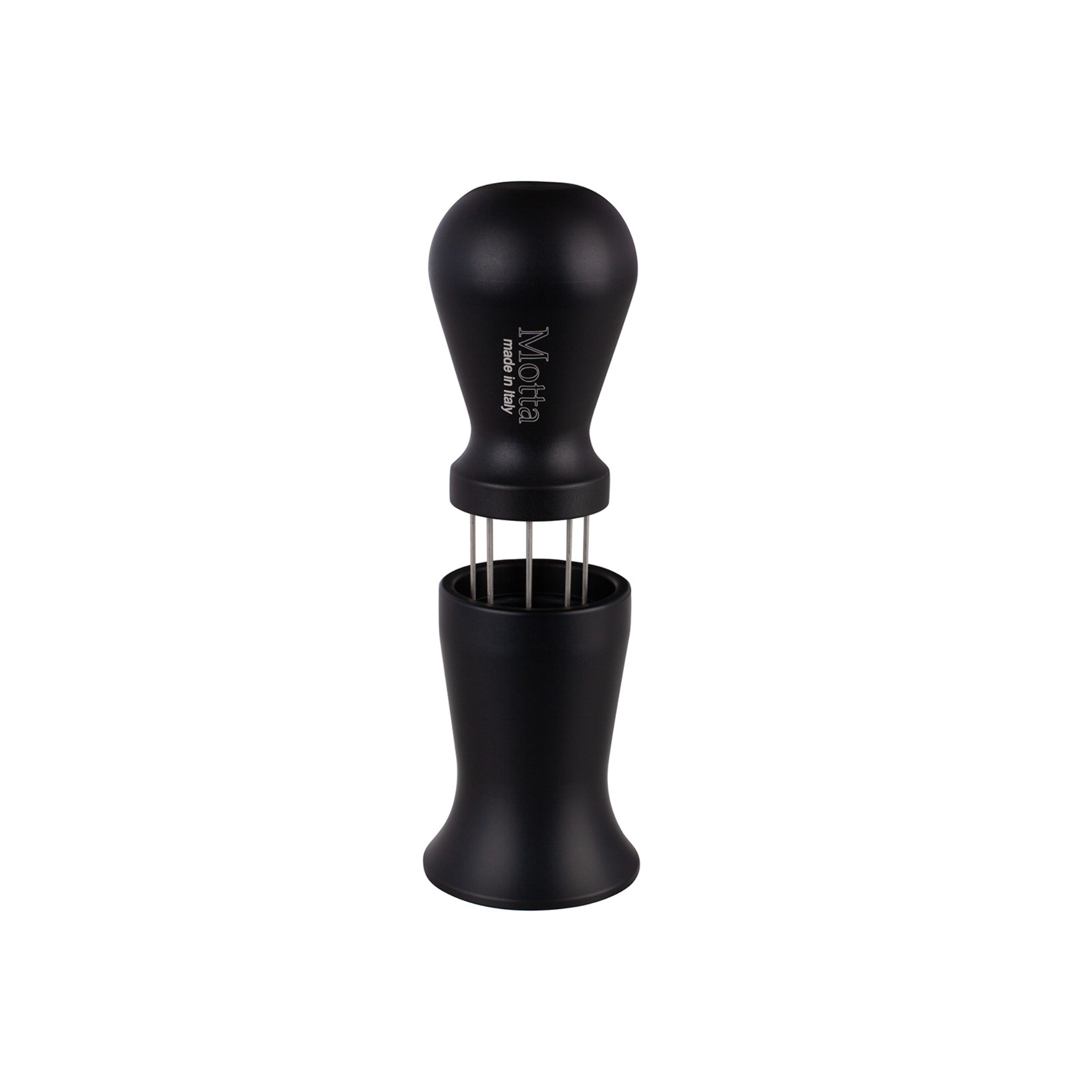 Basta un paio di secondi per rompere i grumi del caffè macinato e ottenere una distribuzione più morbida e regolare nel portafiltro.