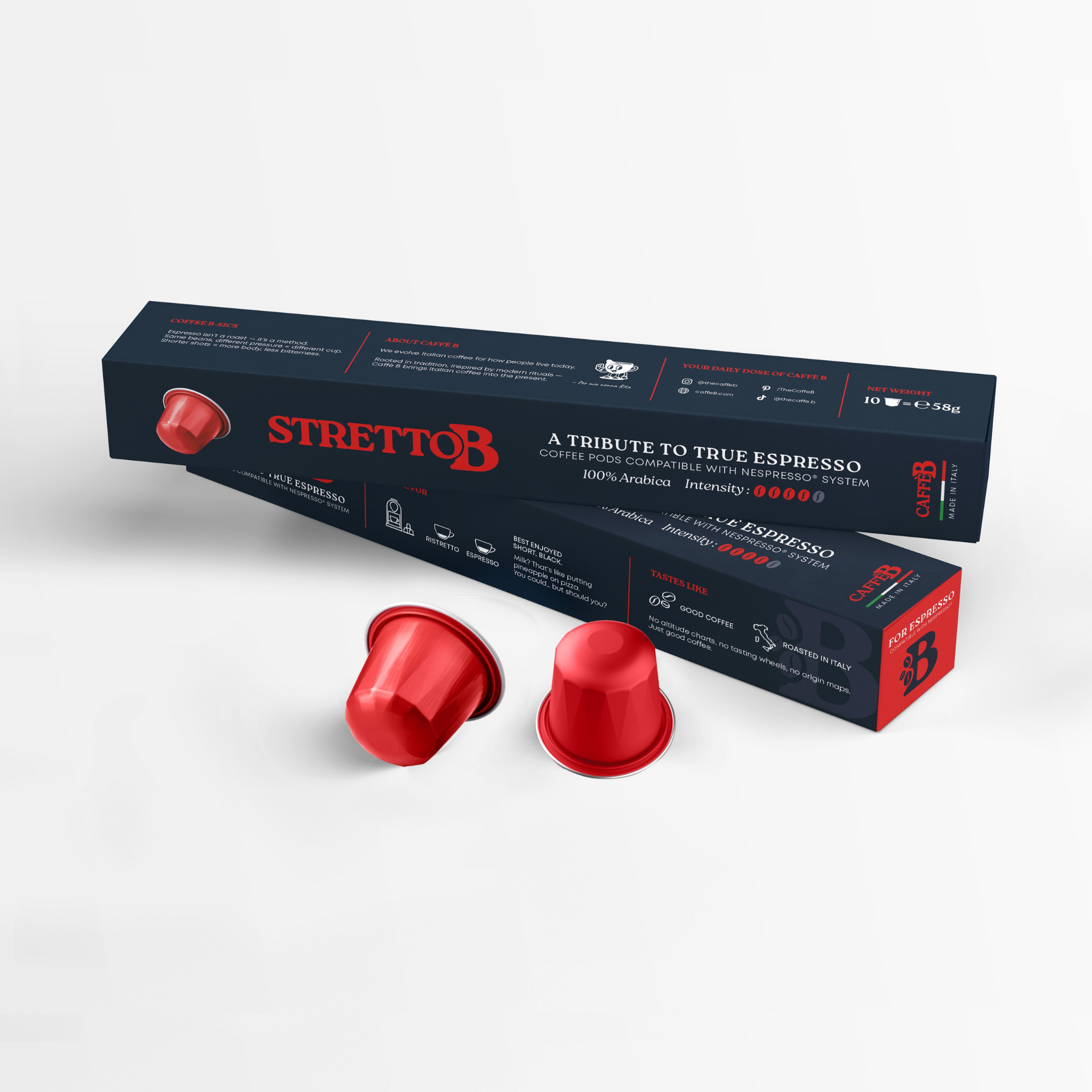 • 200 pods of Stretto B: bold, rich, and true to Italian espresso.